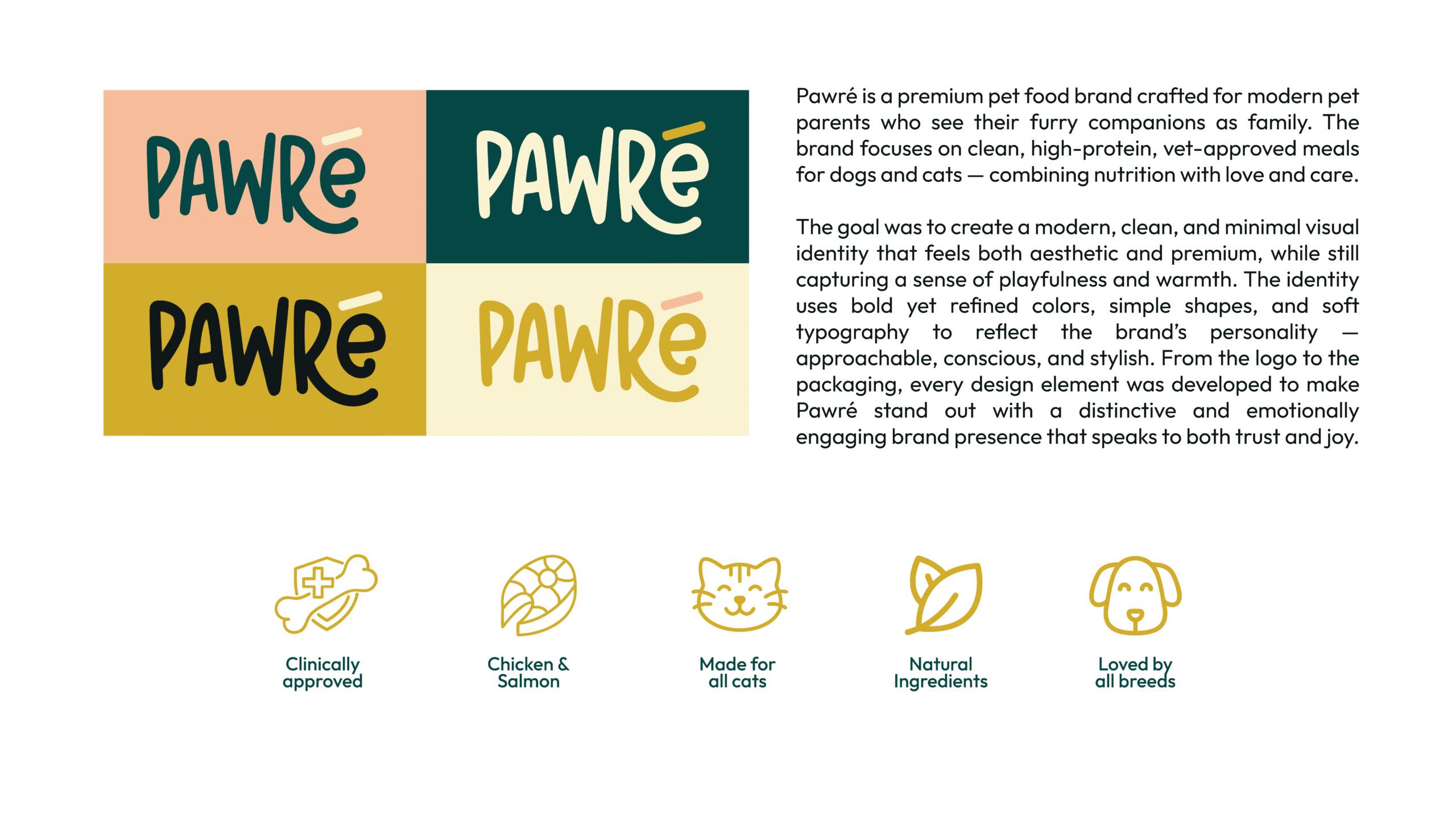 Premium, minimal, and playful — the Pawré identity blends trust, care, and modern aesthetics for conscious pet parents.