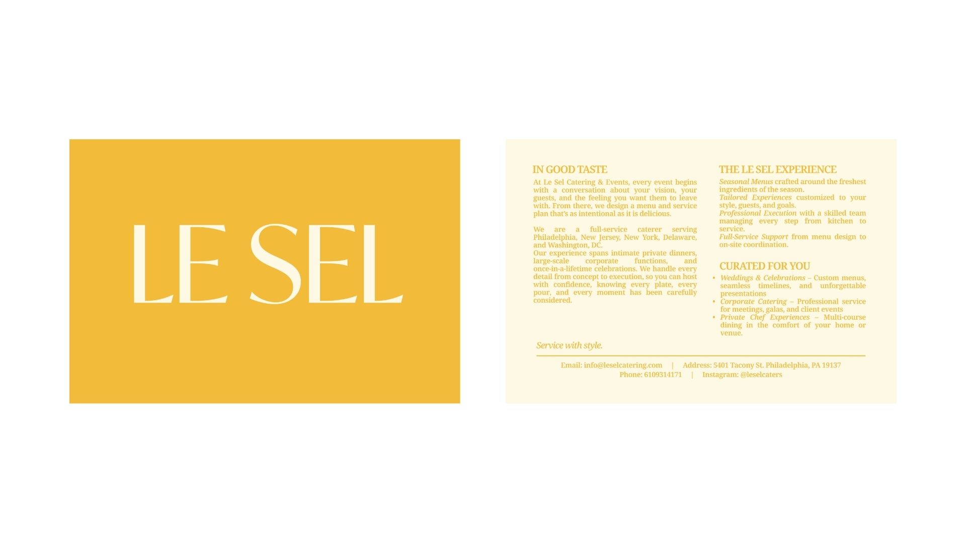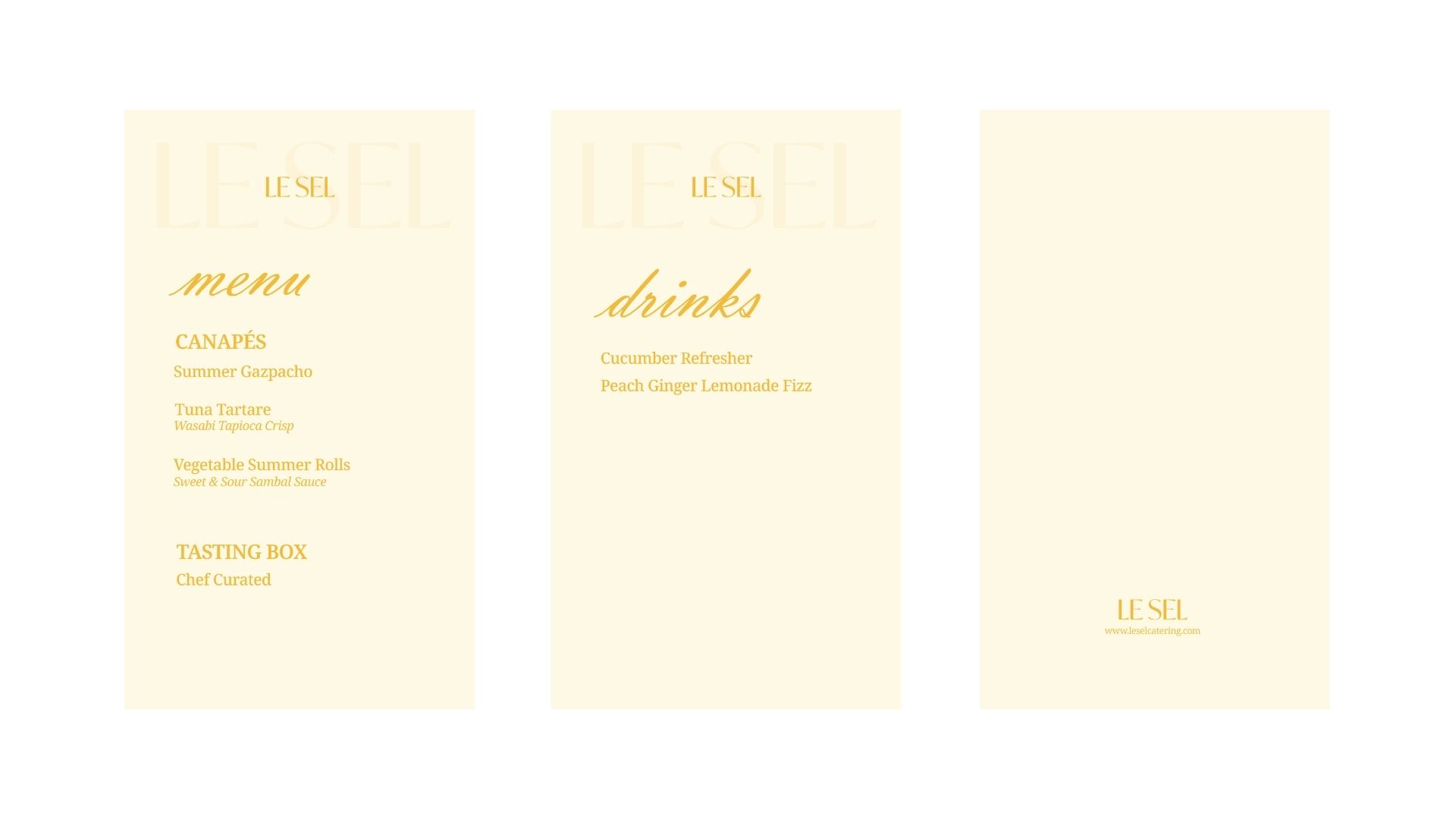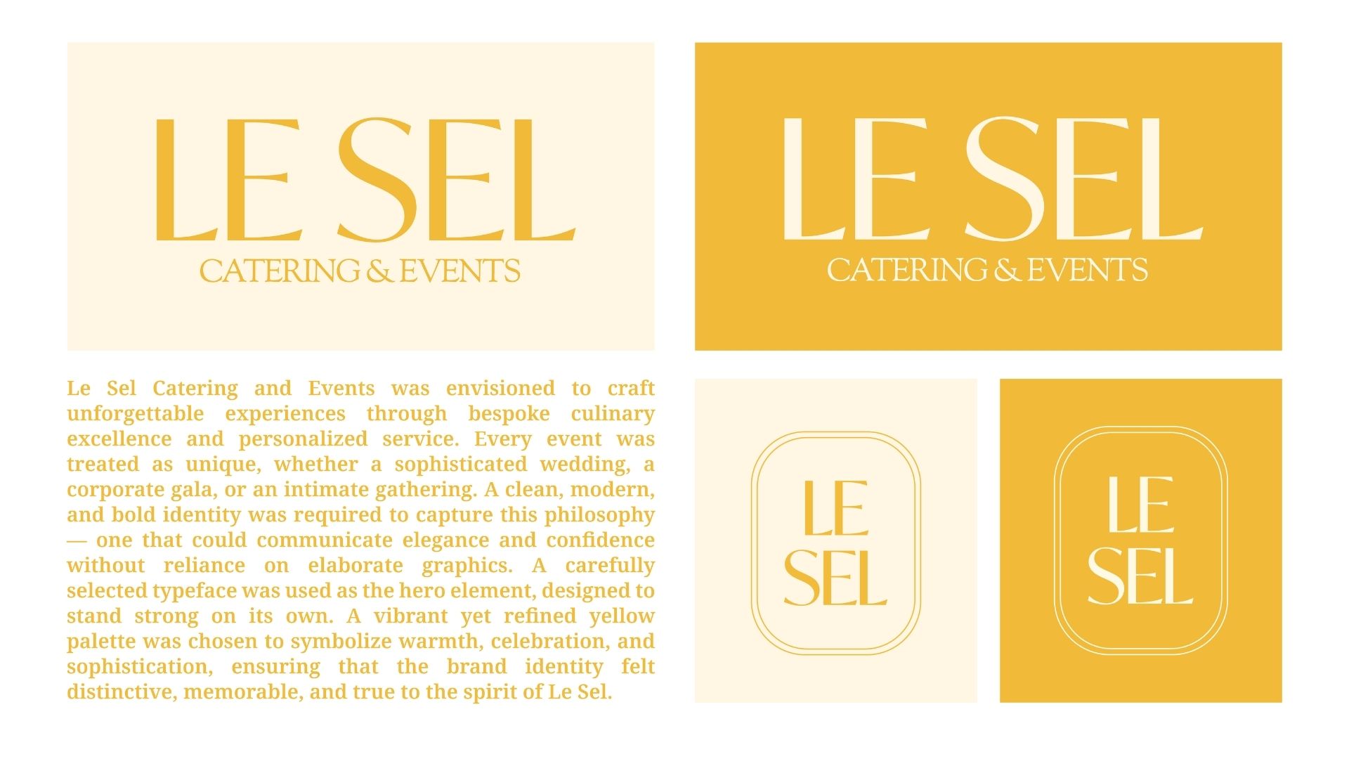 For Le Sel, a clean and confident identity was developed—type-led, minimal, and modern. The striking use of yellow shades reflects the brand’s energy, elegance, and unforgettable approach to events.