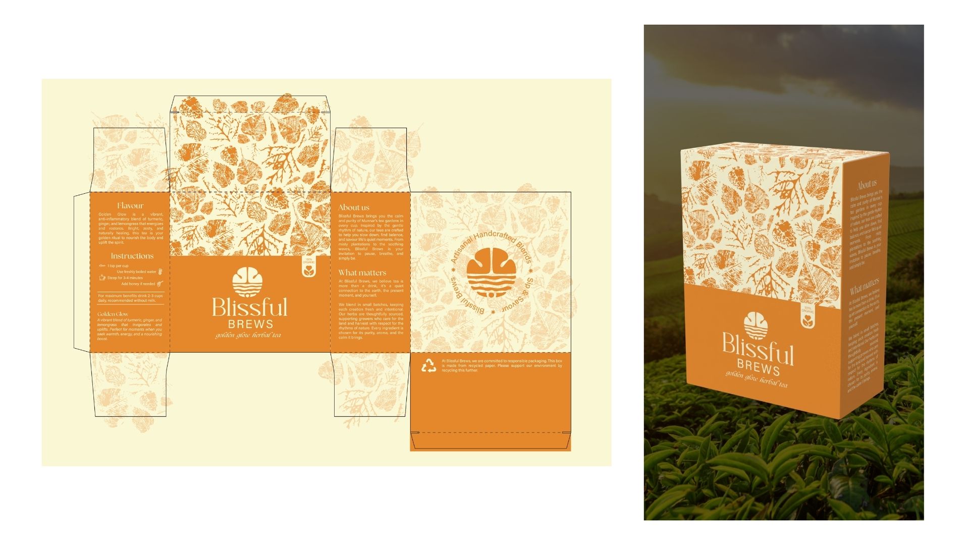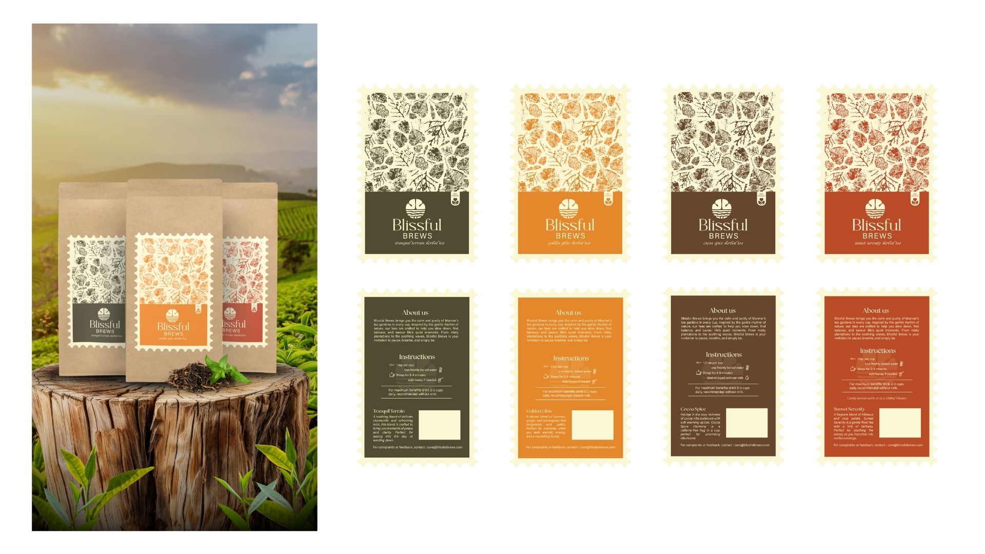 A thoughtful identity for Blissful Brews, crafted to embody purpose and emotion rather than literal symbolism. Hand-detailed packaging and serene visuals turn tea into an everyday ritual of bliss.